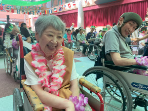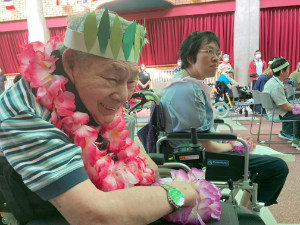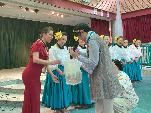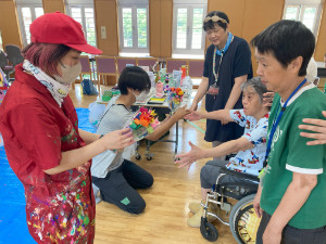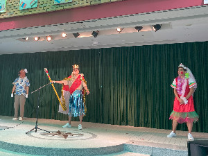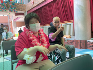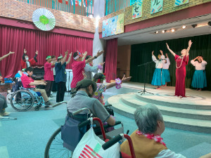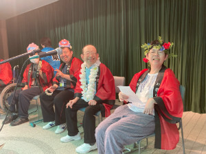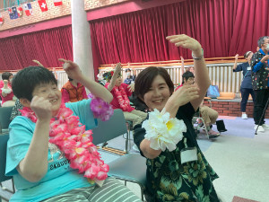 音楽クラブや手話サークルによる出演や、最後はハメハメハ王夫妻と使いの馬?と一緒に「南の島のハメハメハ大王」をみんなで踊って盛り上がり、楽しい夏の一時を過ごすことができました。